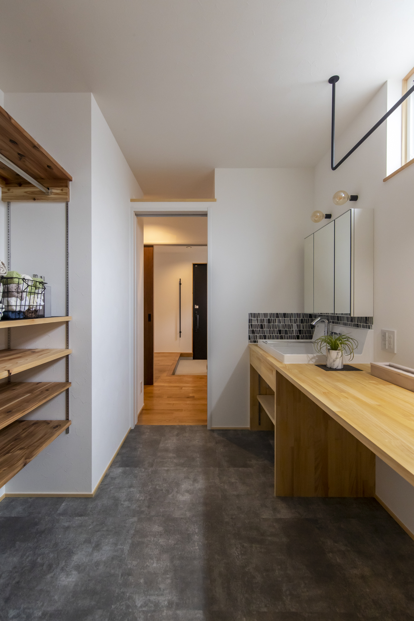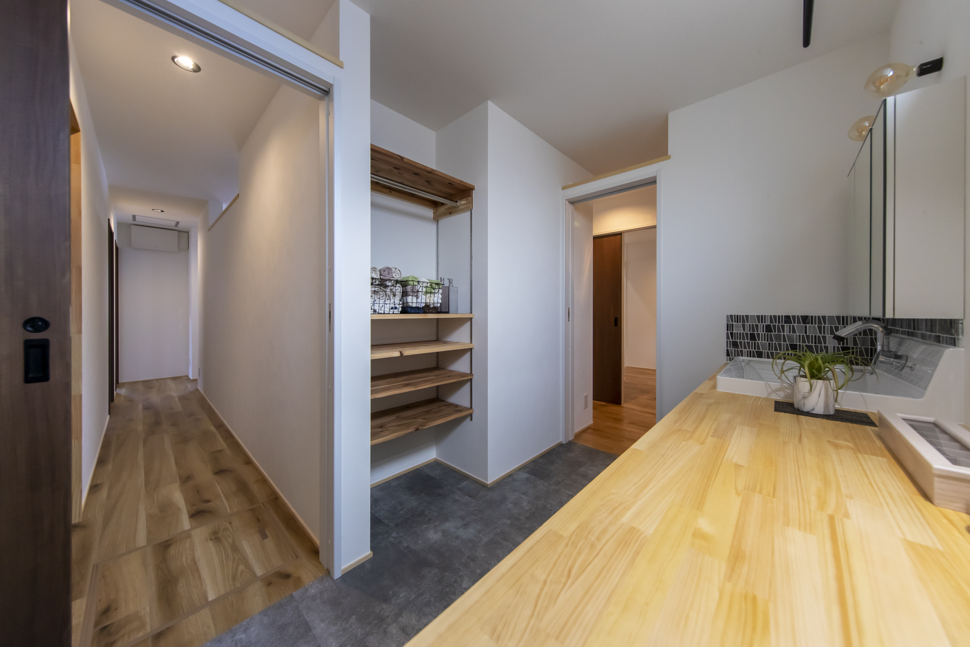 ・キッチンから脱衣所、室内物干しが一連の流れに沿って日々流れる動線であるコト