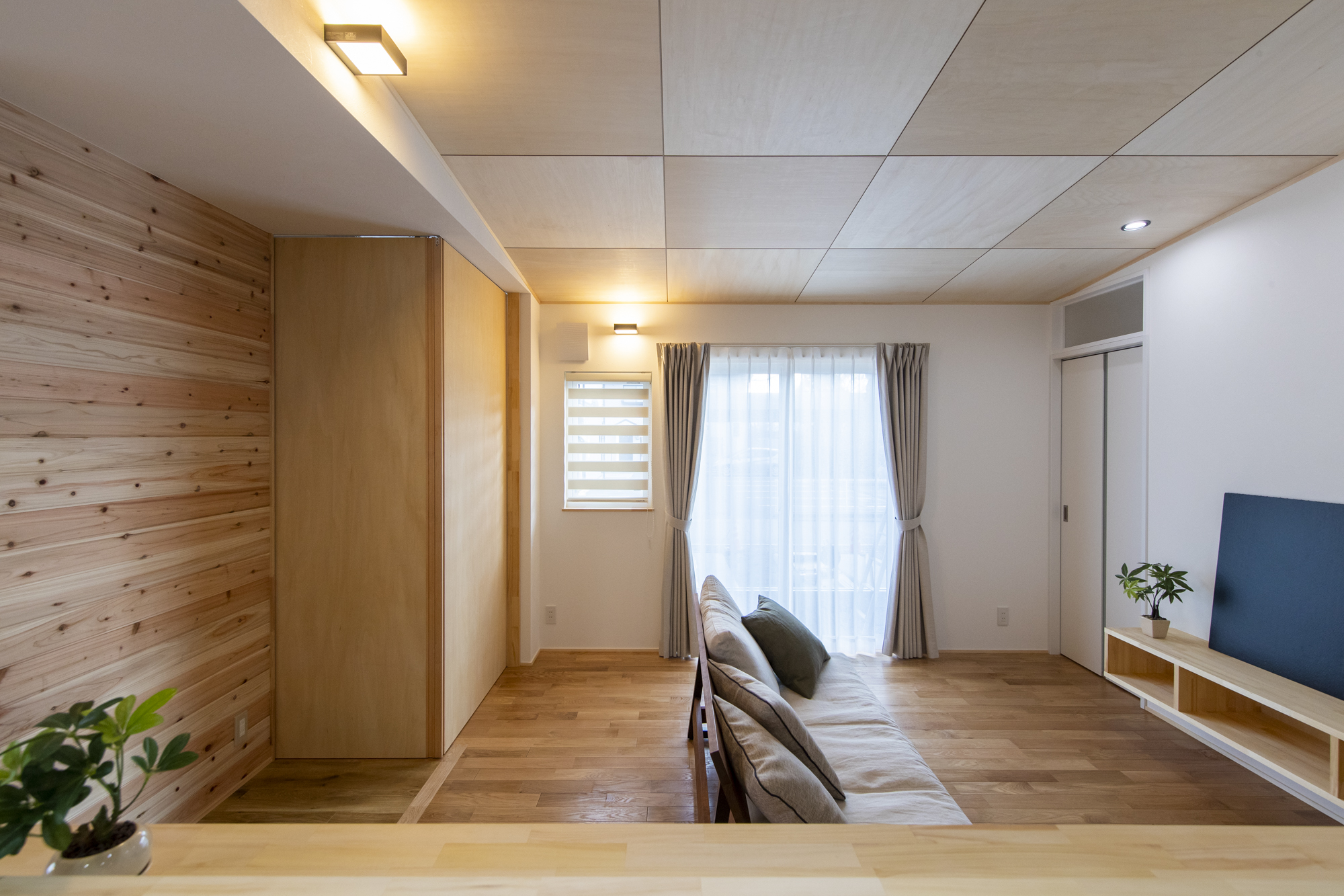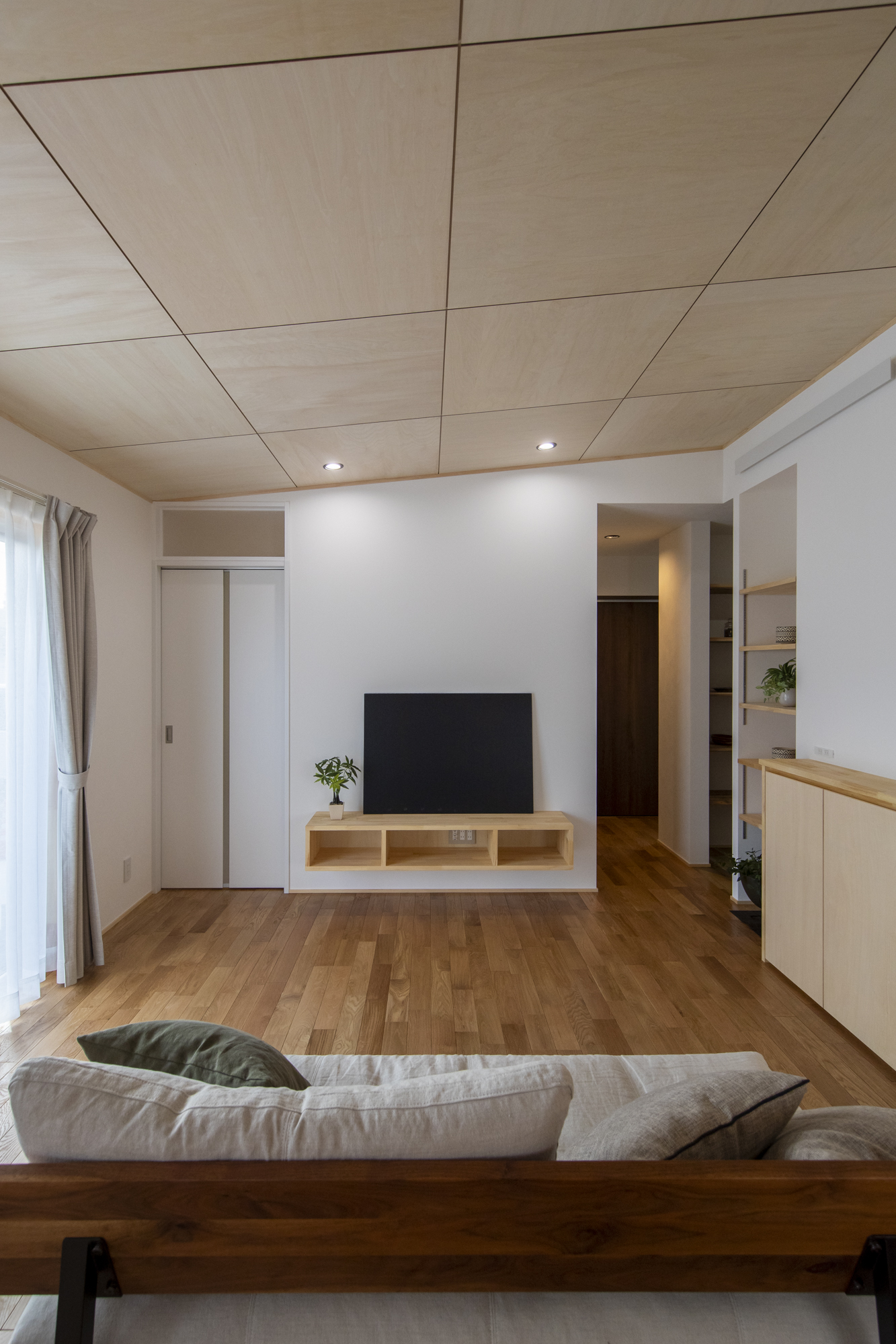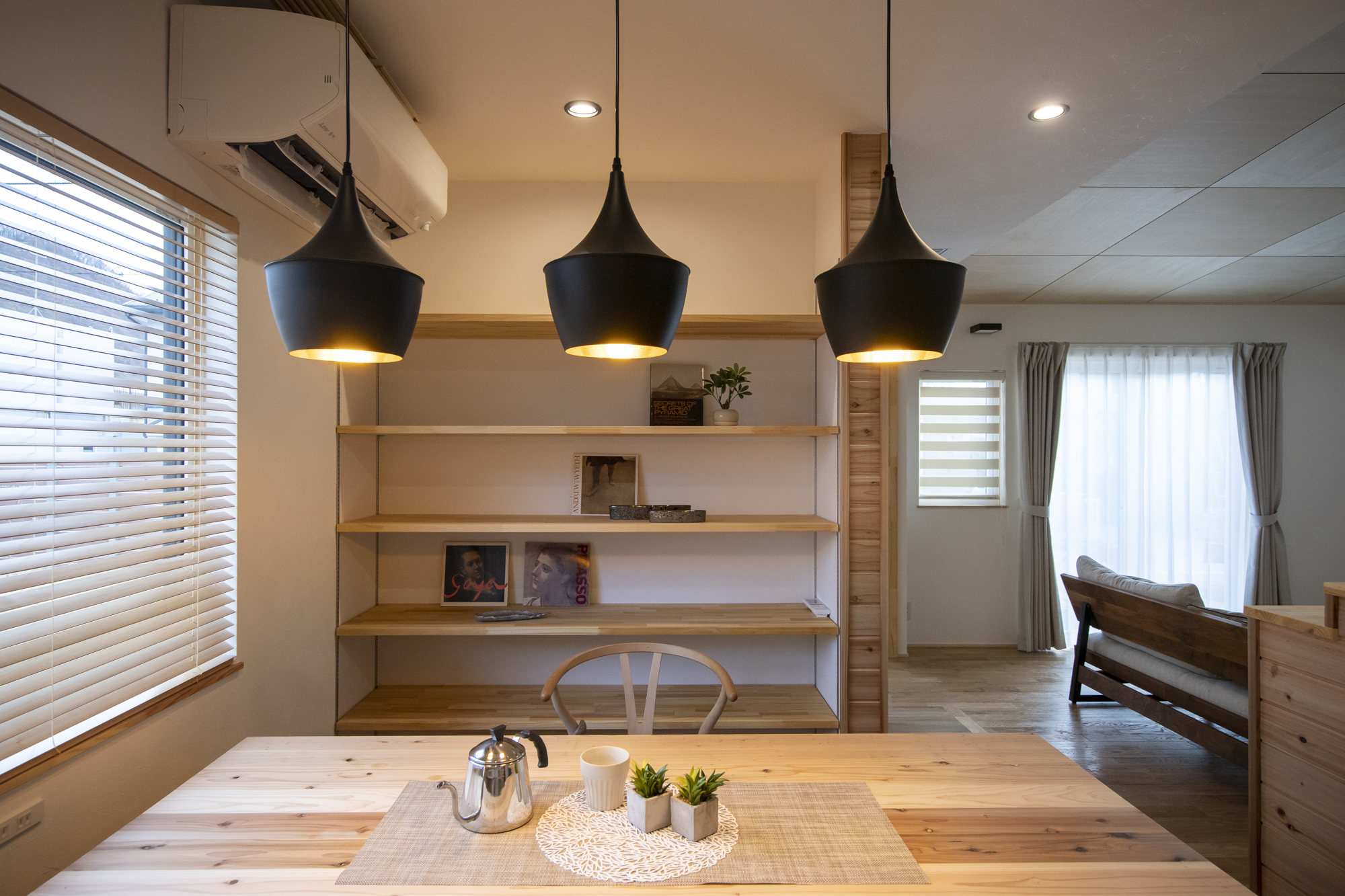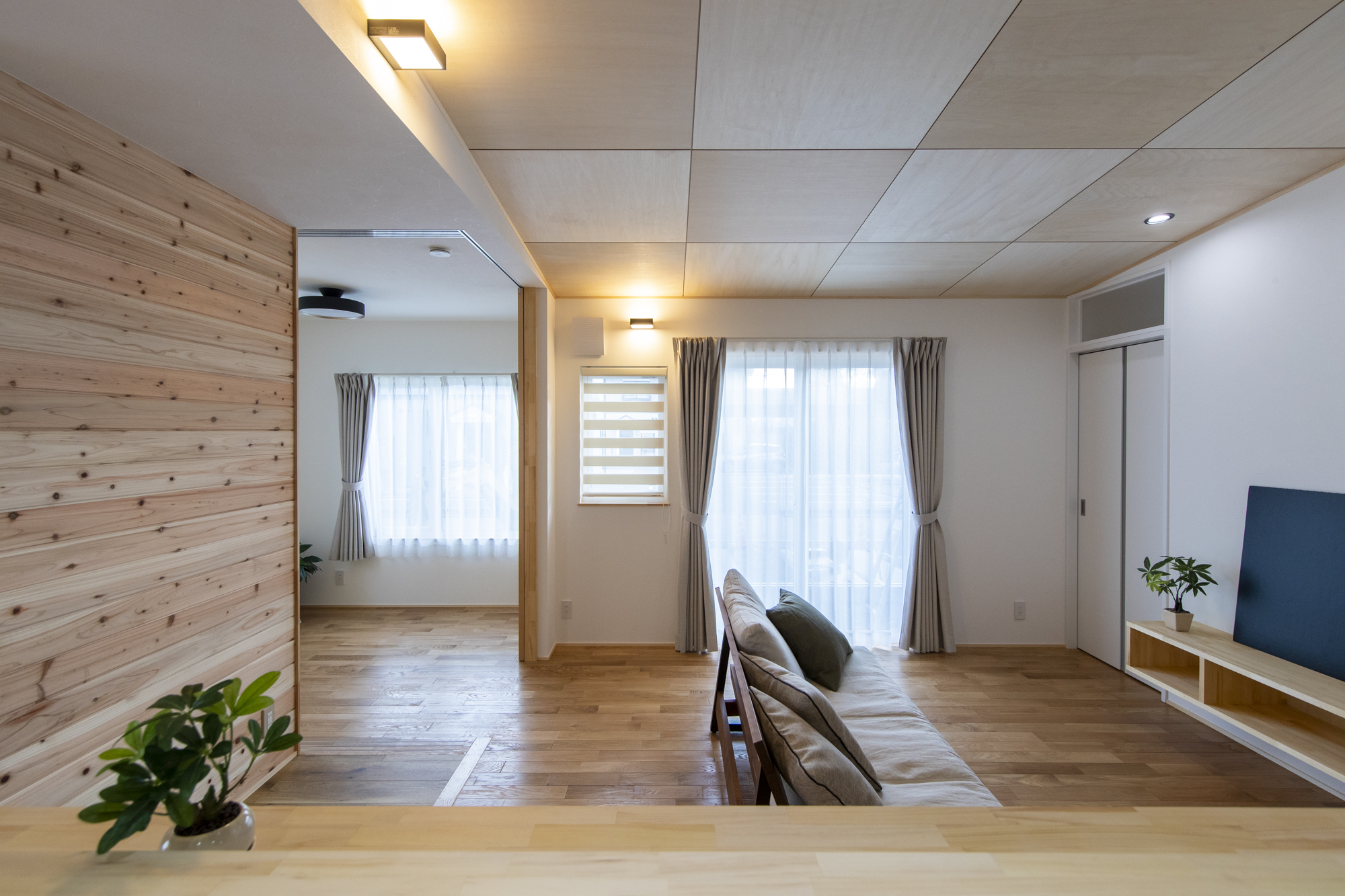 回遊動線と室内物干ですっきり暮らす、子供と室内犬と過ごしやすい家