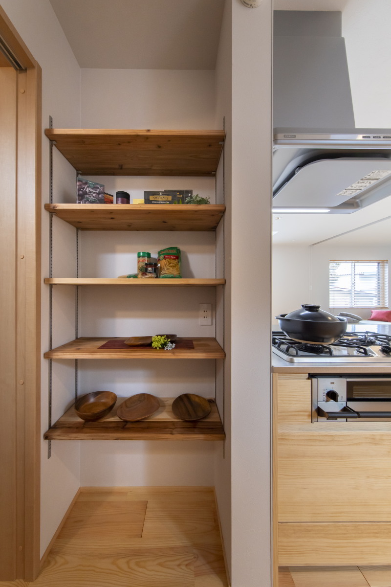 何をどこにしまうかを決めてリビングにも収納をしっかり確保。