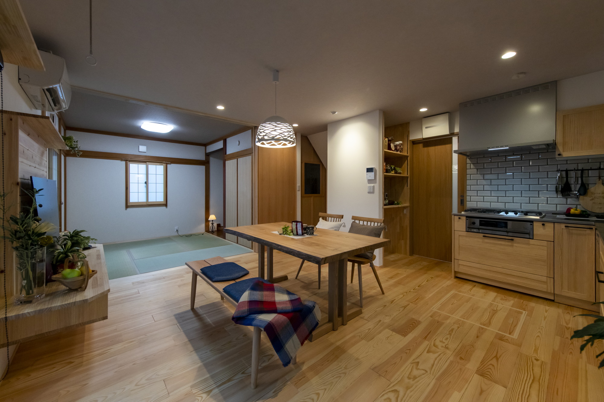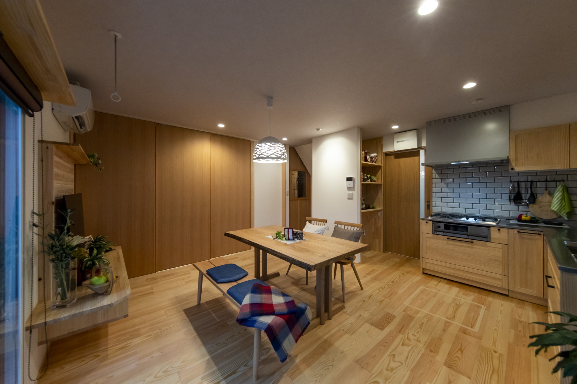 あぶれてしまった廊下をダイニングキッチンスペースに取り込むことで、