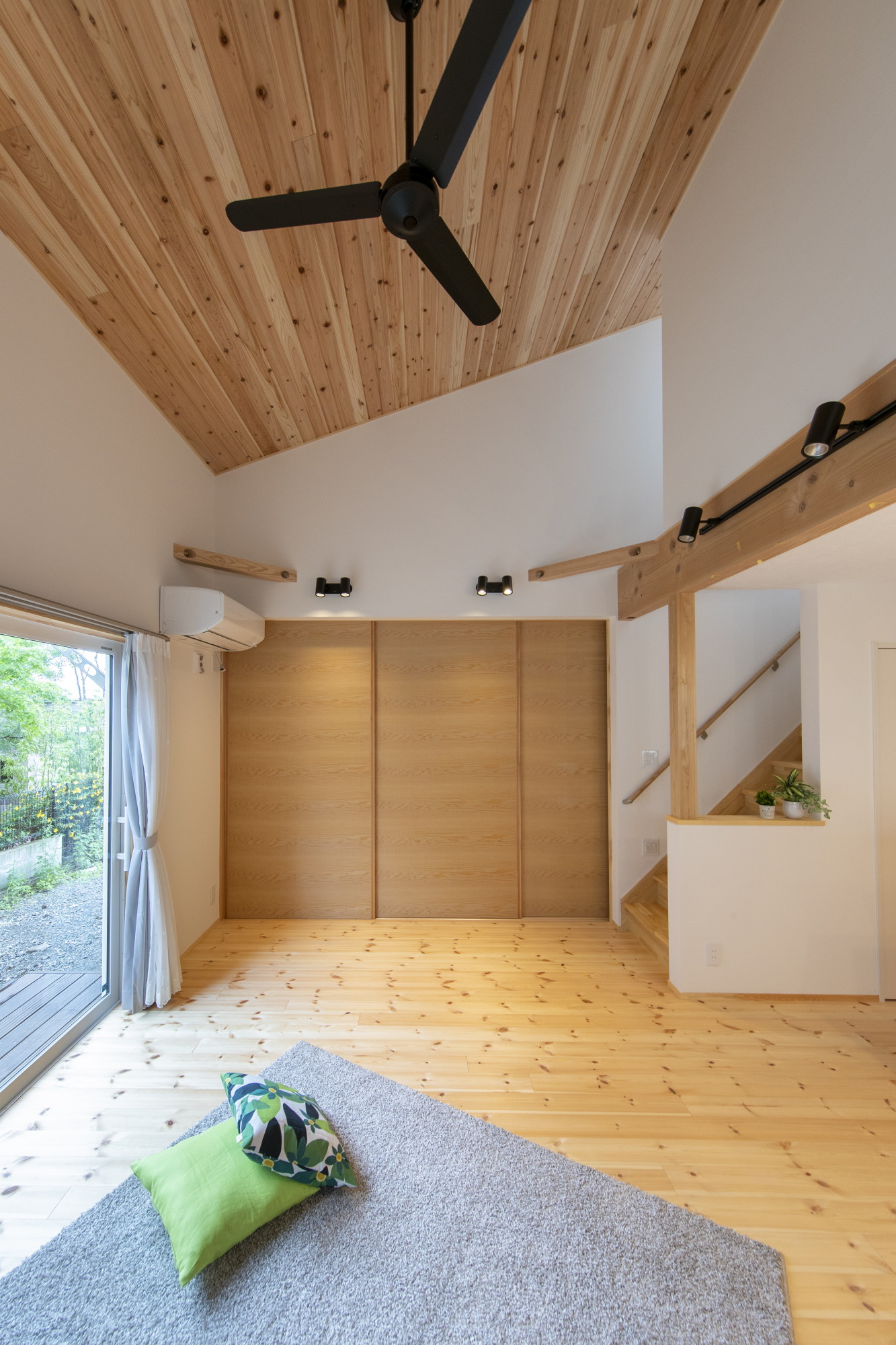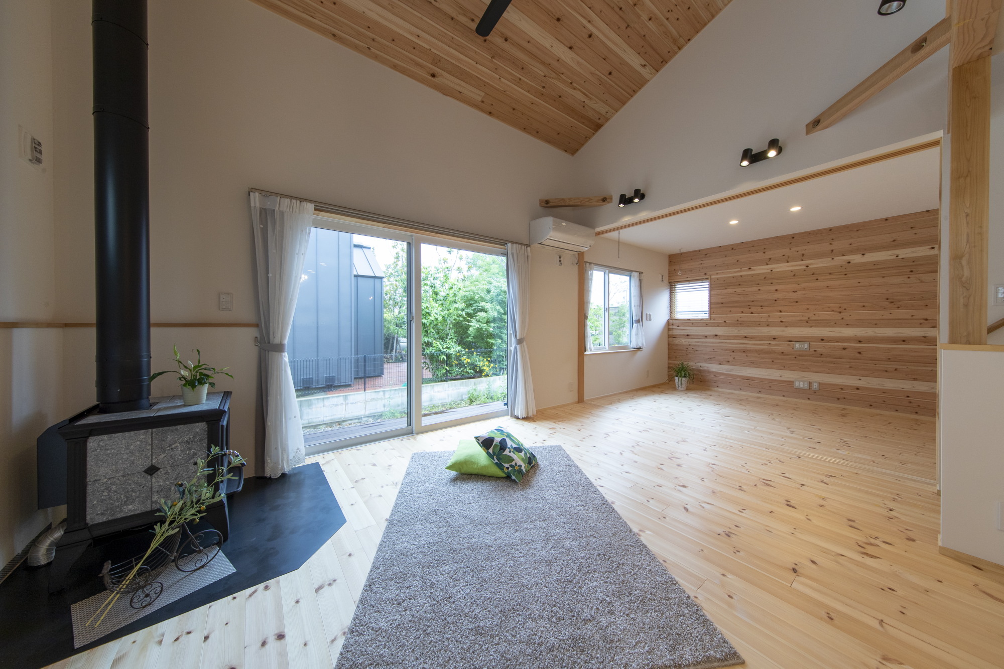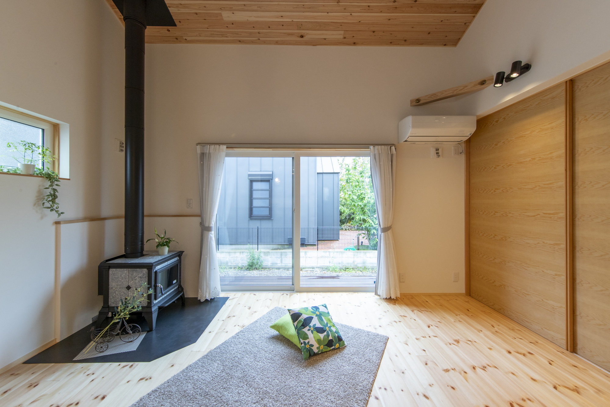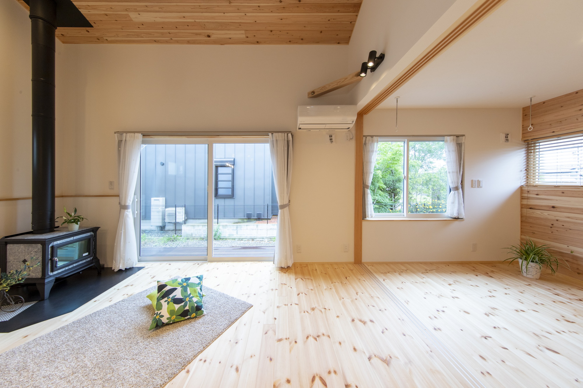 壁:漆喰塗り+室内杉板張り
