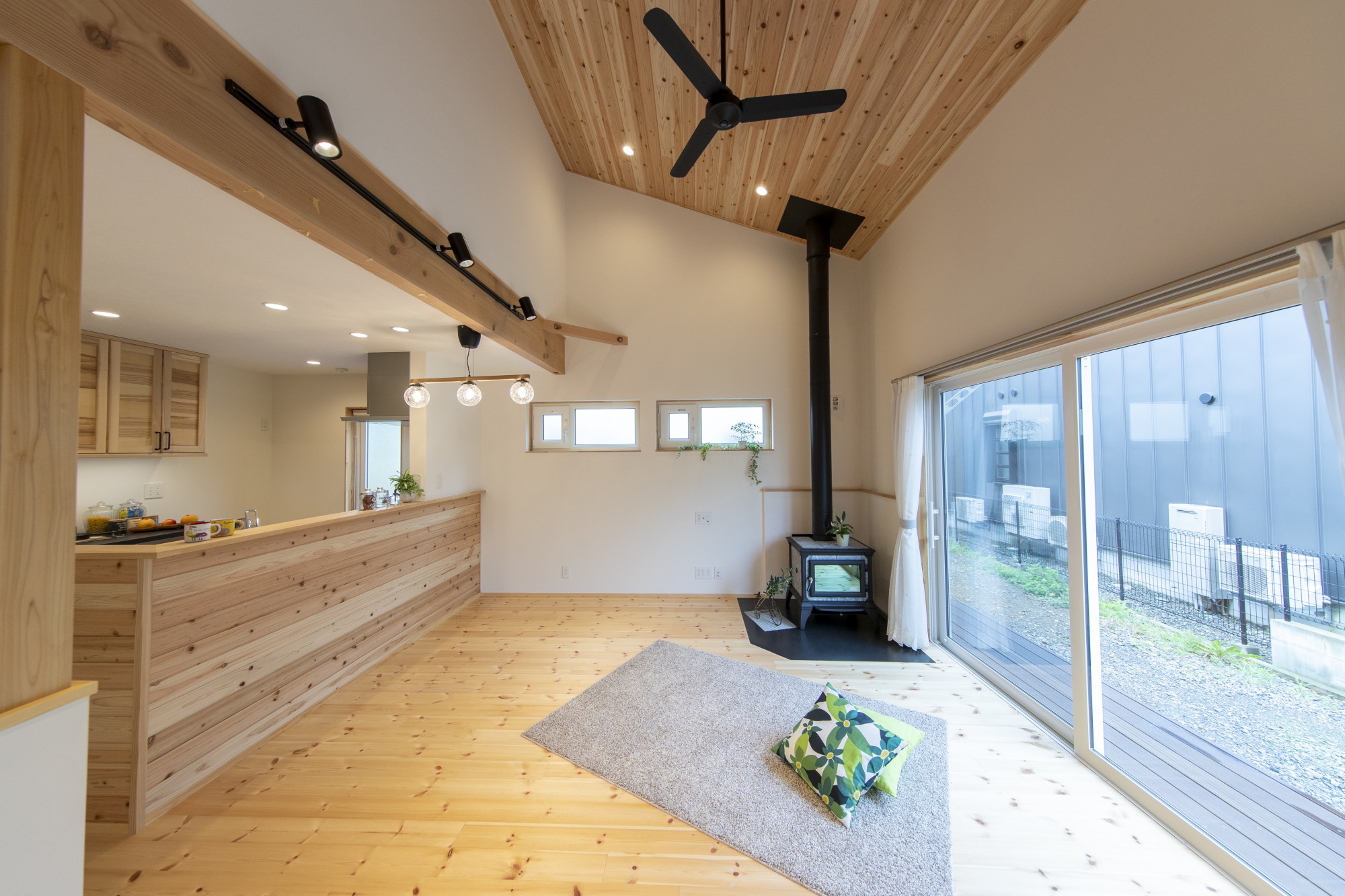 薪ストーブを活かした吹き抜け空間