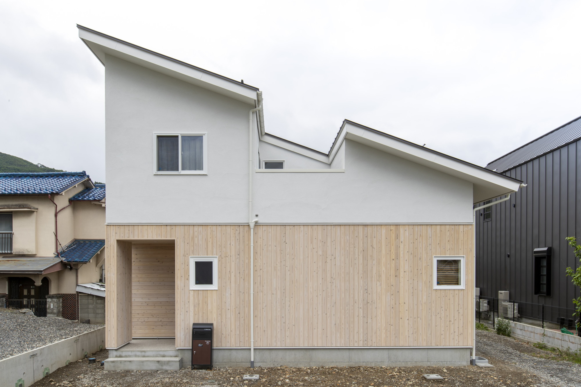 外壁:ジョリパットコテ仕上げ、杉板張り