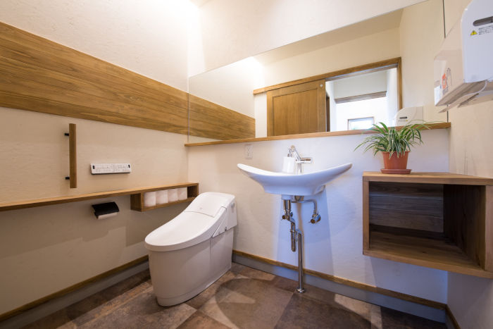 壁:クロス張り・一部EP塗装、桧板張り(着色塗装)