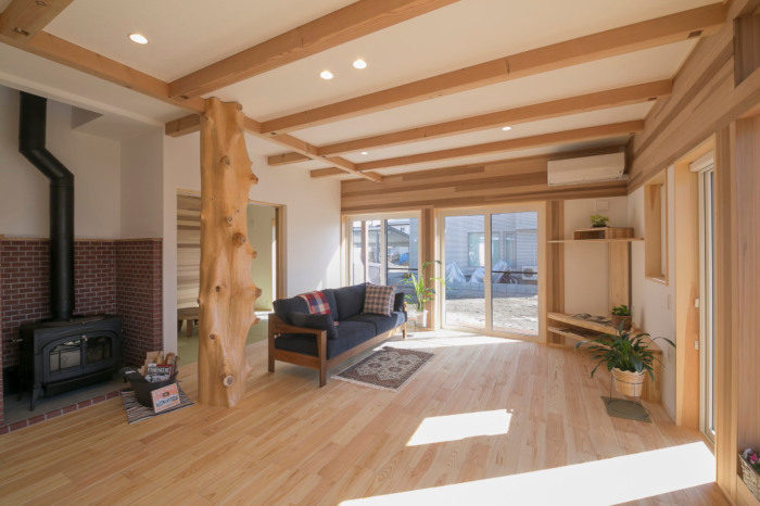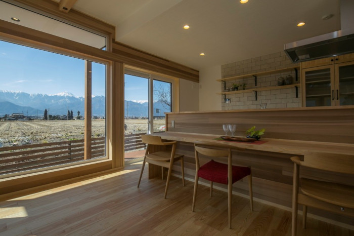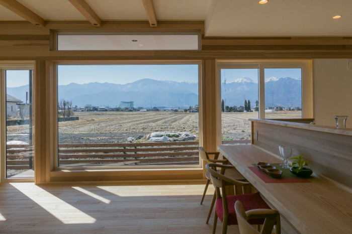 常念岳を望む木組みの住まい 薪ストーブとパッシブ設計
