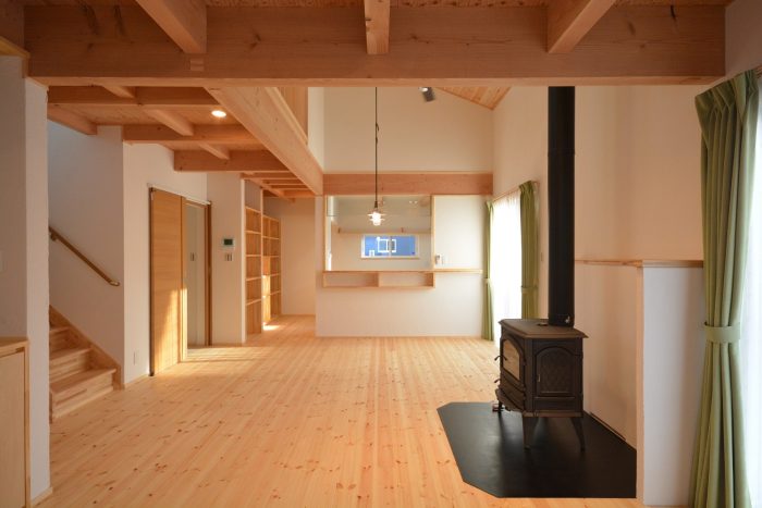 薪ストーブと吹抜けで暖かく暮らす信州