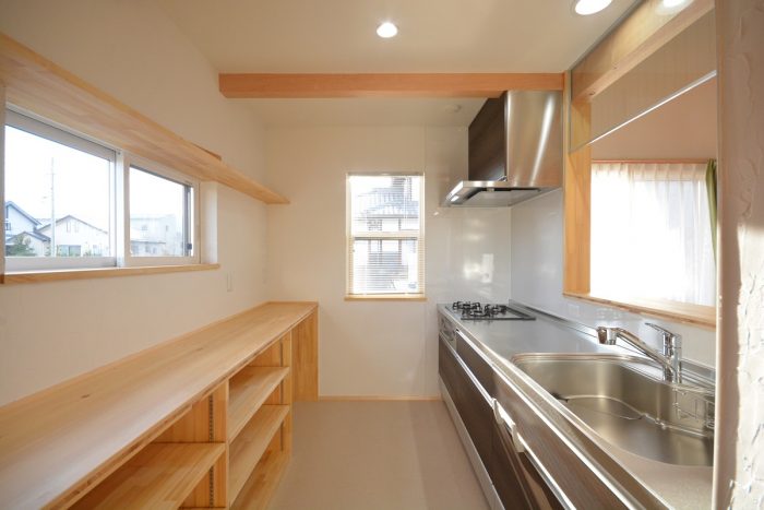 キッチンの背面収納は造作でシンプルに