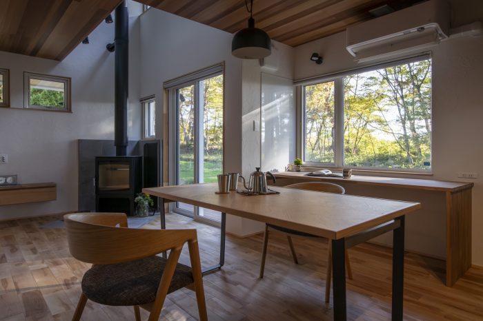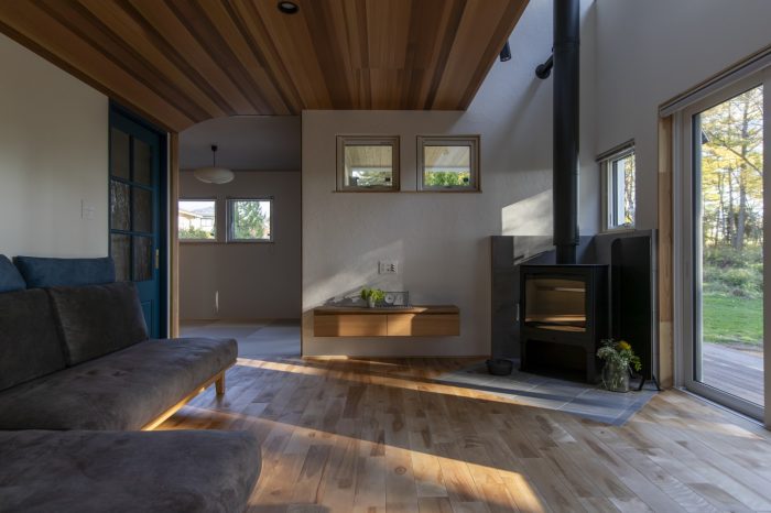 薪ストーブと周辺の森林帯、八ヶ岳を望みながら日々を穏やかに暮らす住まい。