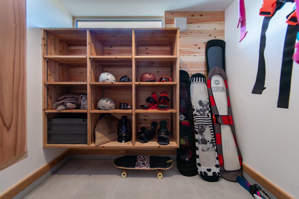大きな土間で、スノーグッズを乾かしながら暮らす。