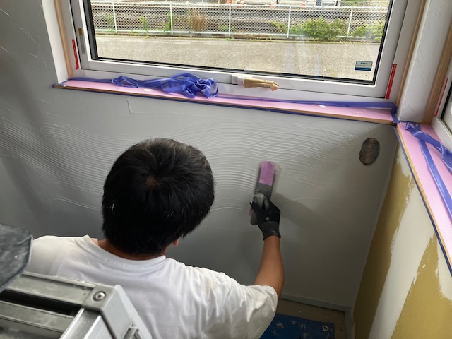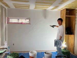こちらはお施主さんの要望で、室内の塗壁を、漆喰で波のイメージを作ったものです。